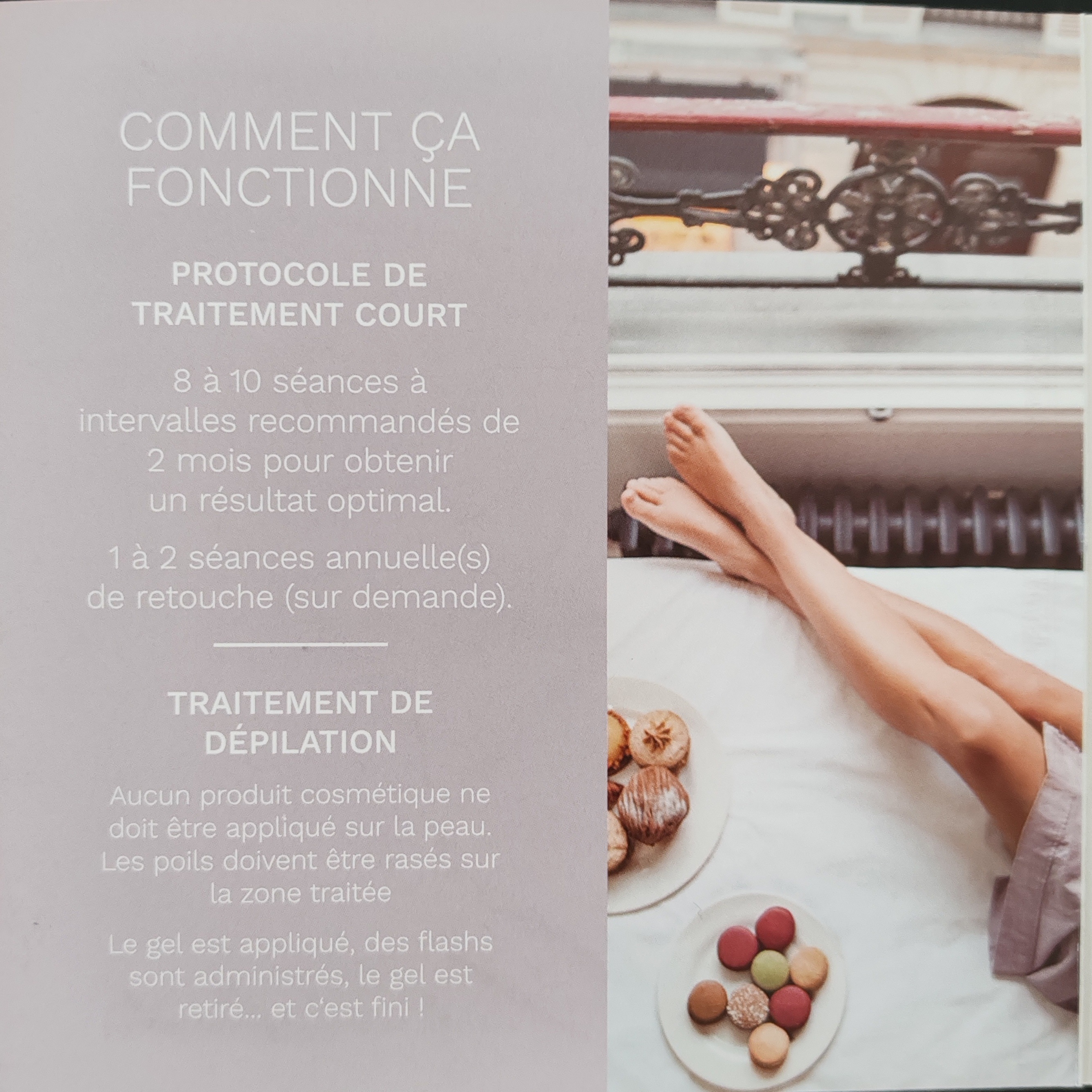 L’épilation définitive ne fonctionne que pendant la phase de pousse du poil (anagène). Il est donc important de répéter le traitement tous les 2 mois, jusqu’à ce que tous les poils aient été atteints par la flash dans la phase anagène.