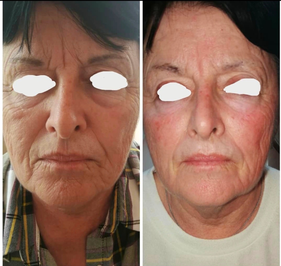 - Zones traitées : Visage, cou, décolleté, face dorsale des mains.